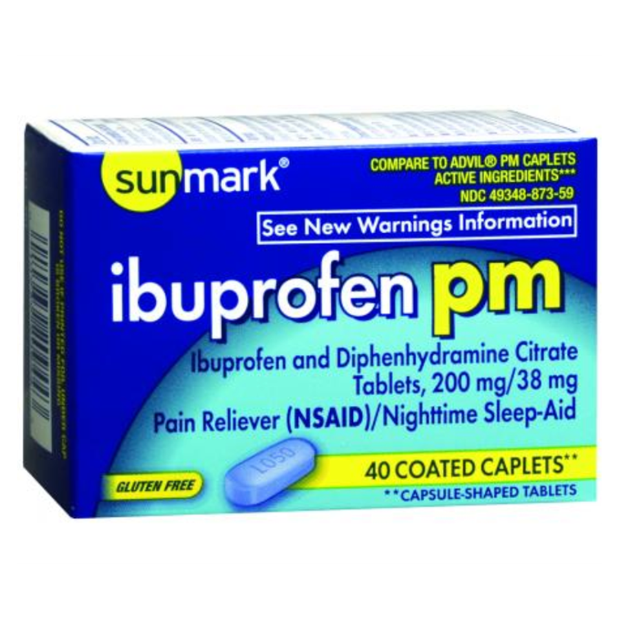 Sunmark Ibuprofen PM Coated Caplets, 200 mg - 40 ct