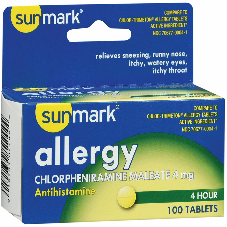 Sunmark Allergy Relief, 4 mg Chlorpheniramine Maleate, 100 Tablets