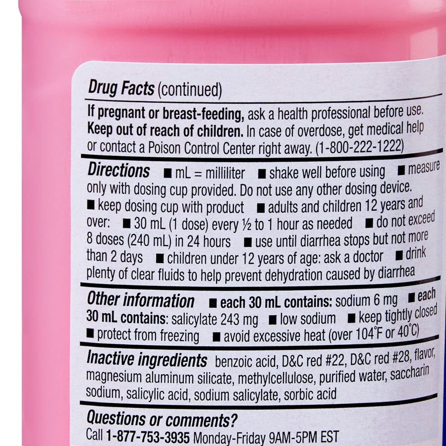 Regular strength formula made up of bismuth subsalicylate (262 mg)