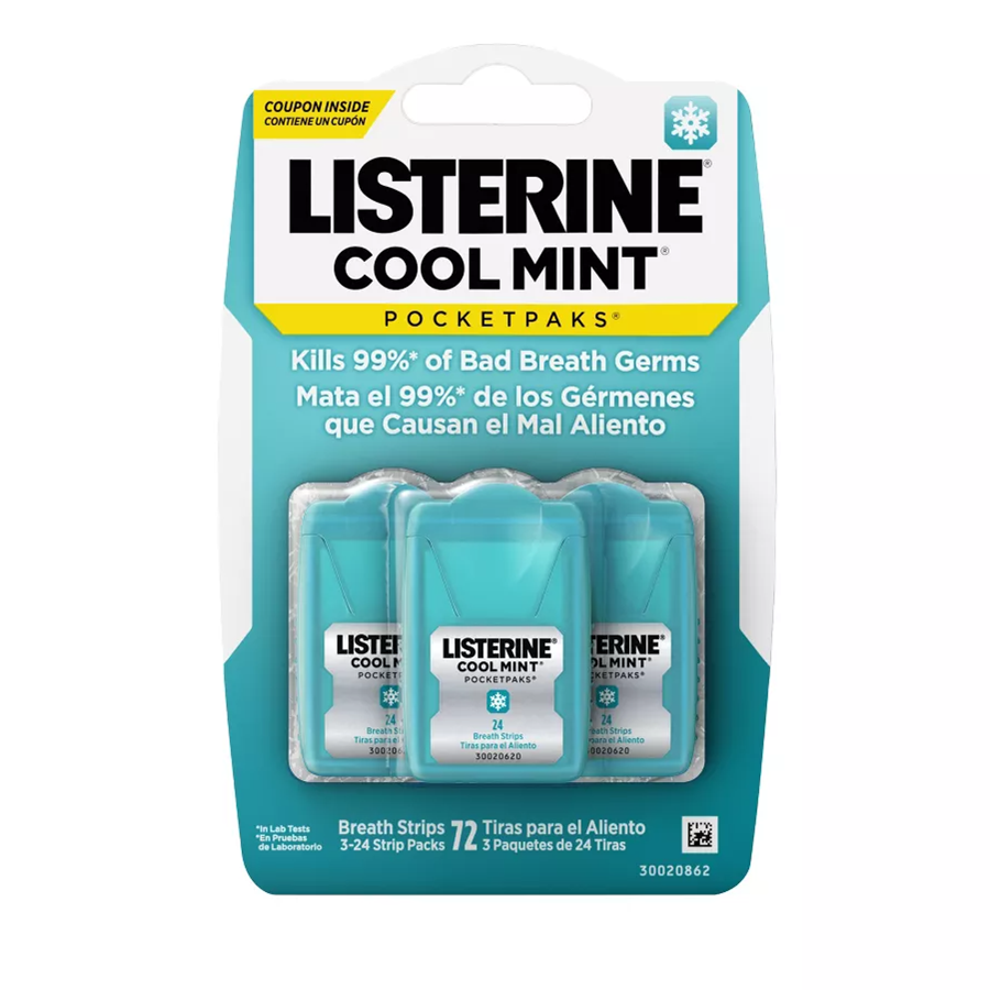 These Cool Mint flavored pocket-sized breath strips dissolve instantly to kill germs that cause bad breath while leaving your mouth feeling clean and refreshed