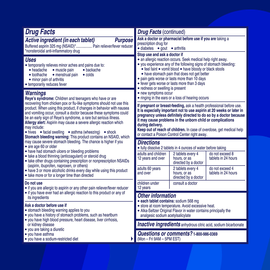 Alka-Seltzer Effervescent Tablets Original Flavor, 24ct
