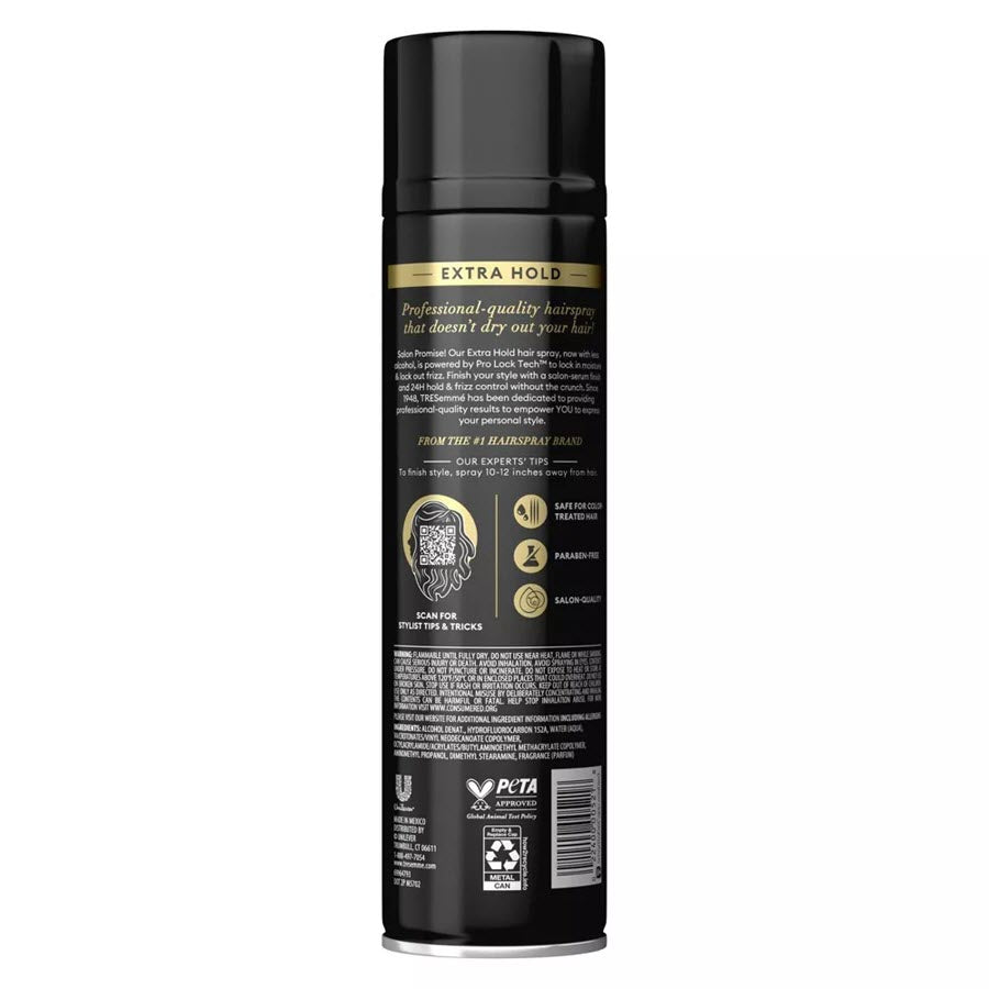 EXTRA HOLD HAIRSPRAY: TRESemmé Extra Hold Hairspray provides a salon-style finish and 24-hour hold for your hairstyle without crunch or stiffness.