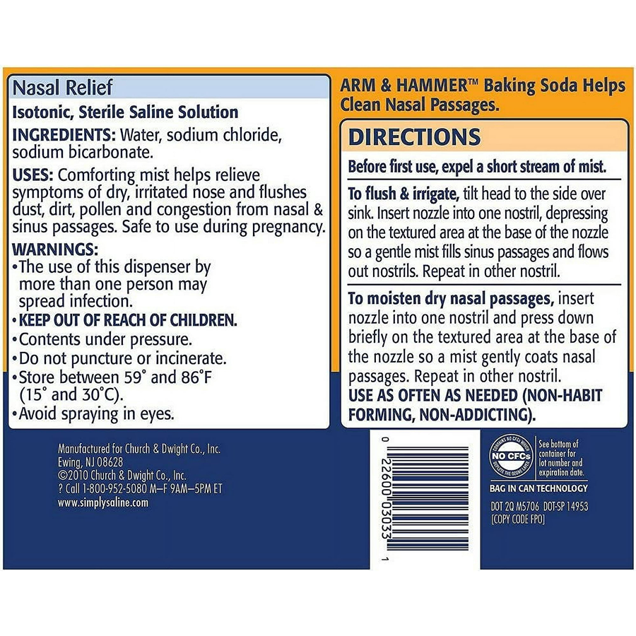 Arm & Hammer Simply Saline Sterile Saline Nasal Mist For Nasal Relief, 1.5oz