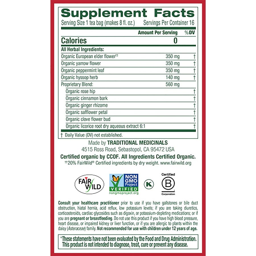 Traditional Medicinals Organic Herbal Cold Care Elderflower Spice Herbal Tea, 16ct
