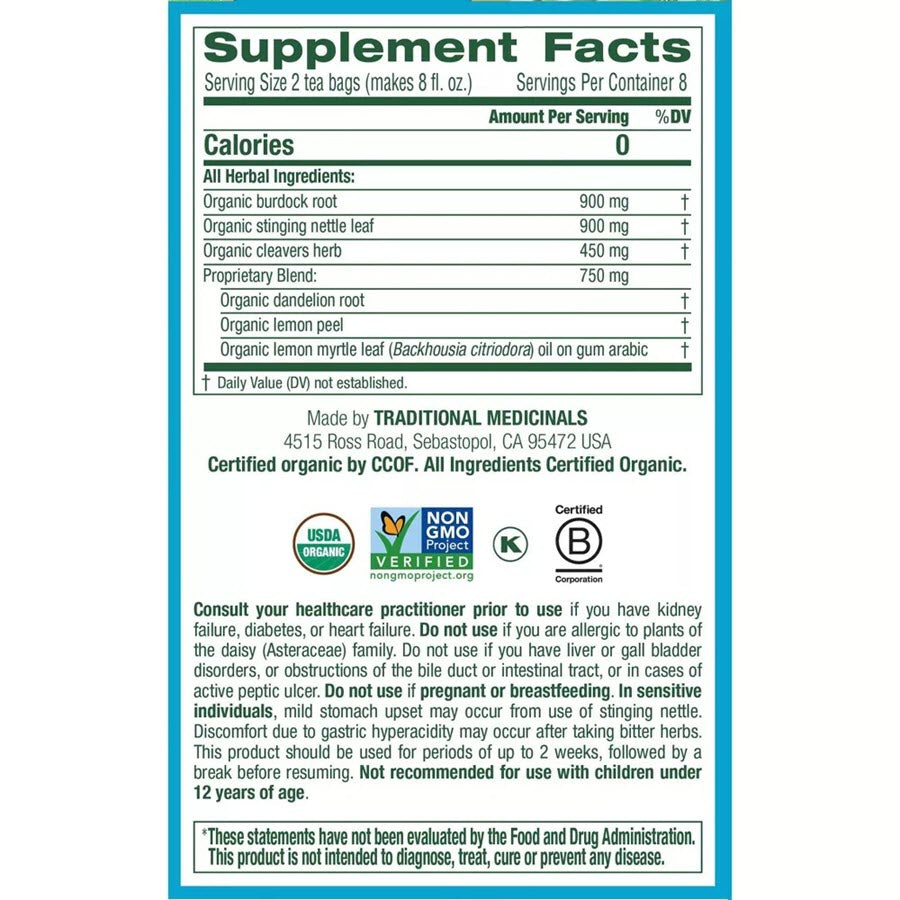 Traditional Medicinals Organic EveryDay Detox Lemon Herbal Tea - 16ct