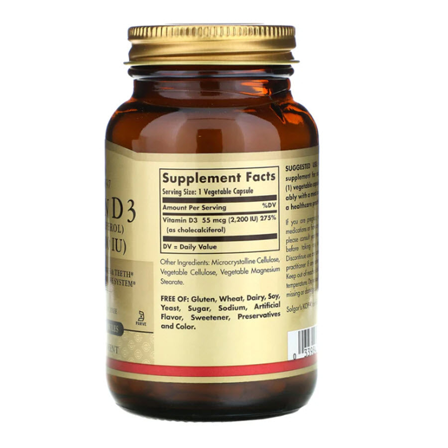 Solgar Vitamin D3 (Cholecalciferol), 55 mcg (2,200 IU), 100 Vegetable Capsules