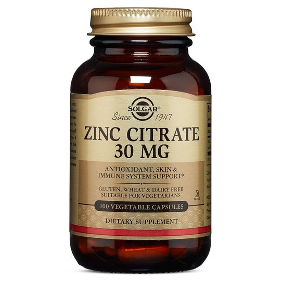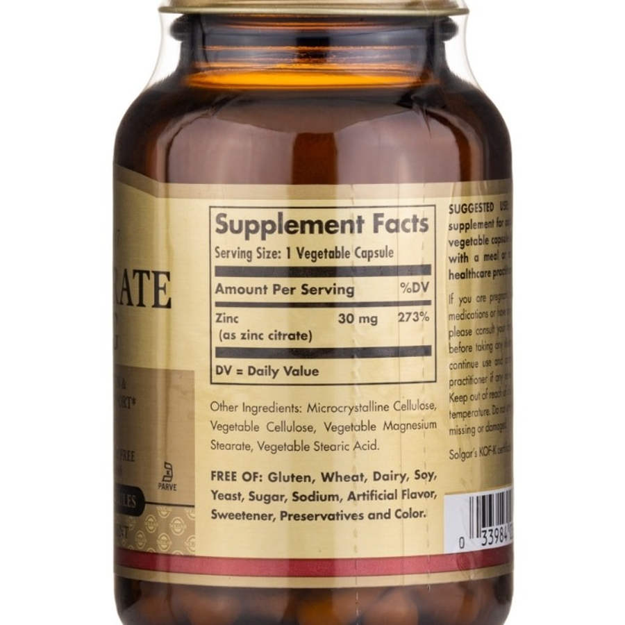 Solgar Zinc Citrate 30 mg, 100 Vegetable Capsules