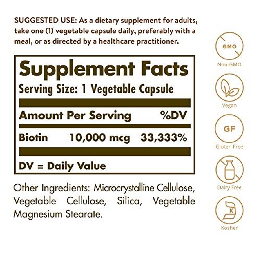 Solgar Biotin 10,000 Mcg, 60 Vegetable Capsules