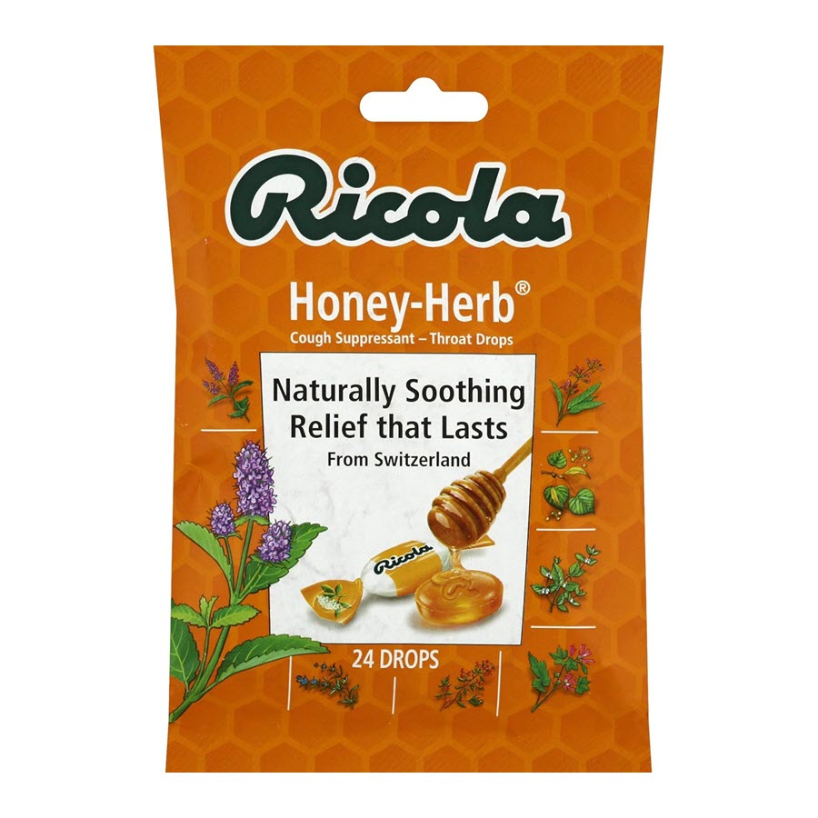 Ricola Honey Herb Drops soothes throats with their unique blend of herbs and pure, natural honey. These natural cough drops contain menthol in a blend of Ricola's delicious Swiss alpine herbs and natural honey. The result is a mild, soothing cough drop ideal for natural relief of sore throat discomfort.