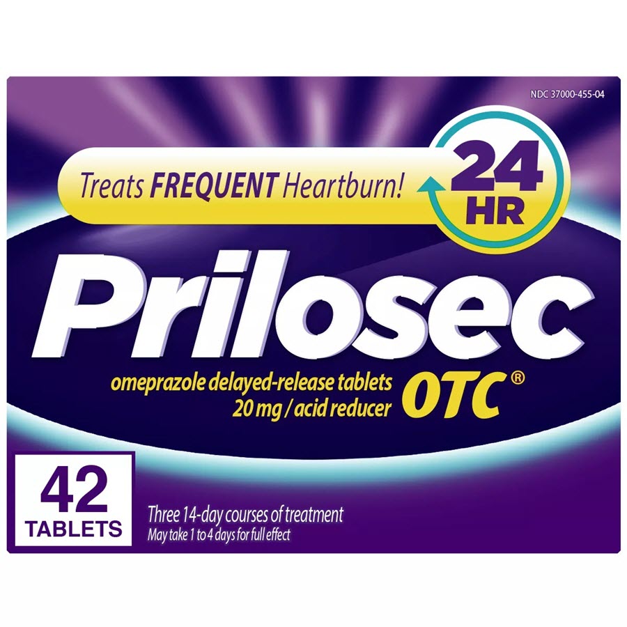 Prilosec OTC Omeprazole 20mg Delayed-Release Acid Reducer for Frequent Heartburn, 42ct