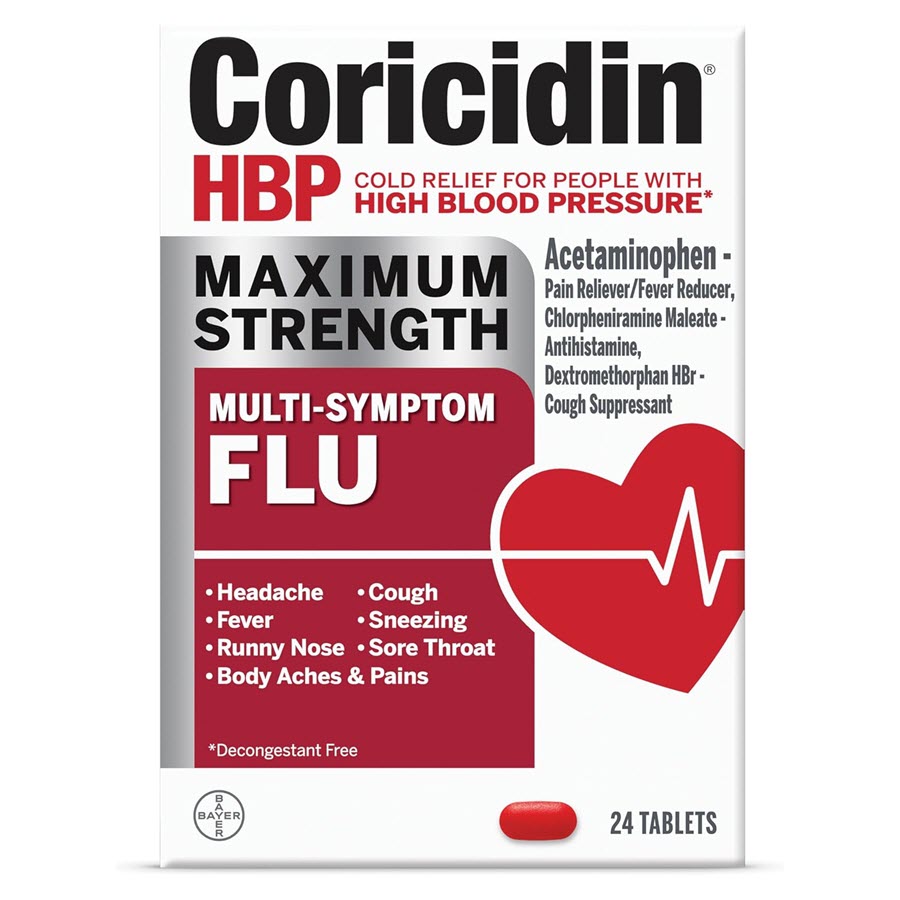 Coricidin HBP Maximum Strength Multi-Symptom Flu Tablets - 24ct