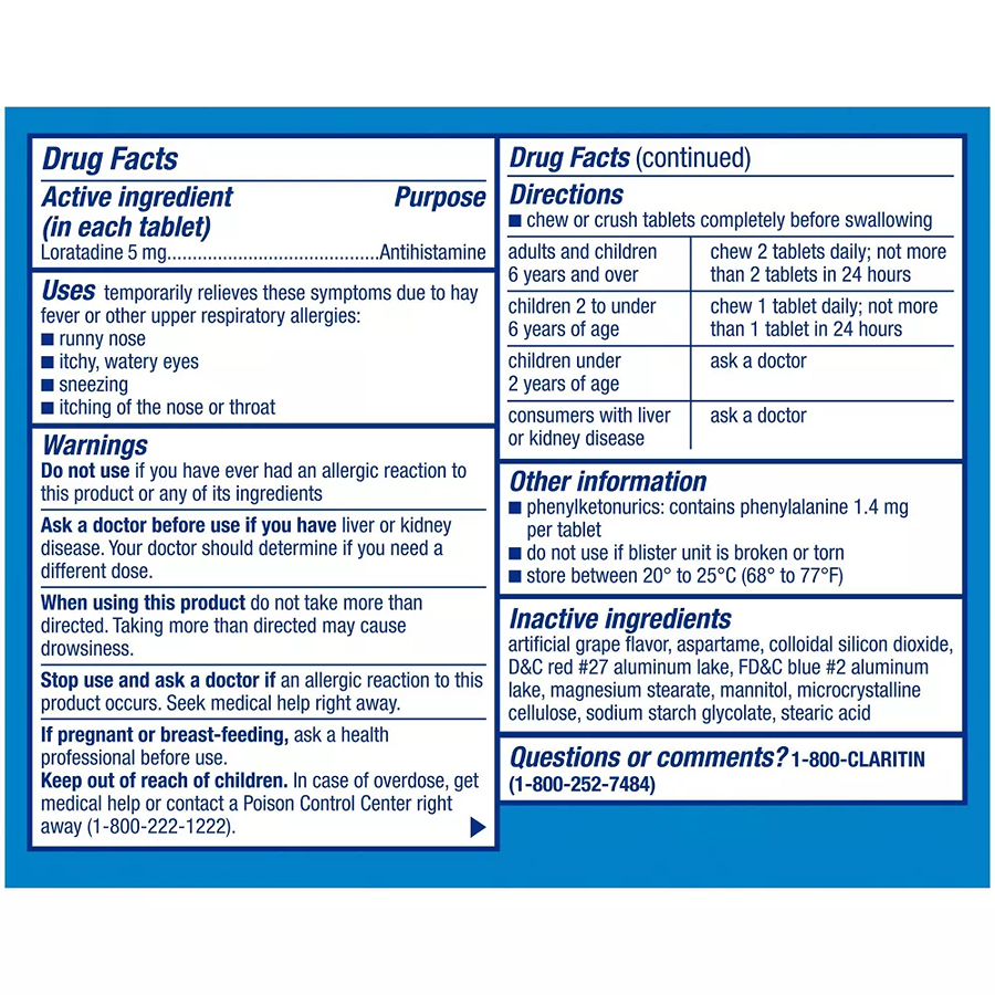 Children's Claritin 24 Hour Allergy Relief Chewable Tablets - Grape - Loratadine 5mg, 10 Chewable Tablets