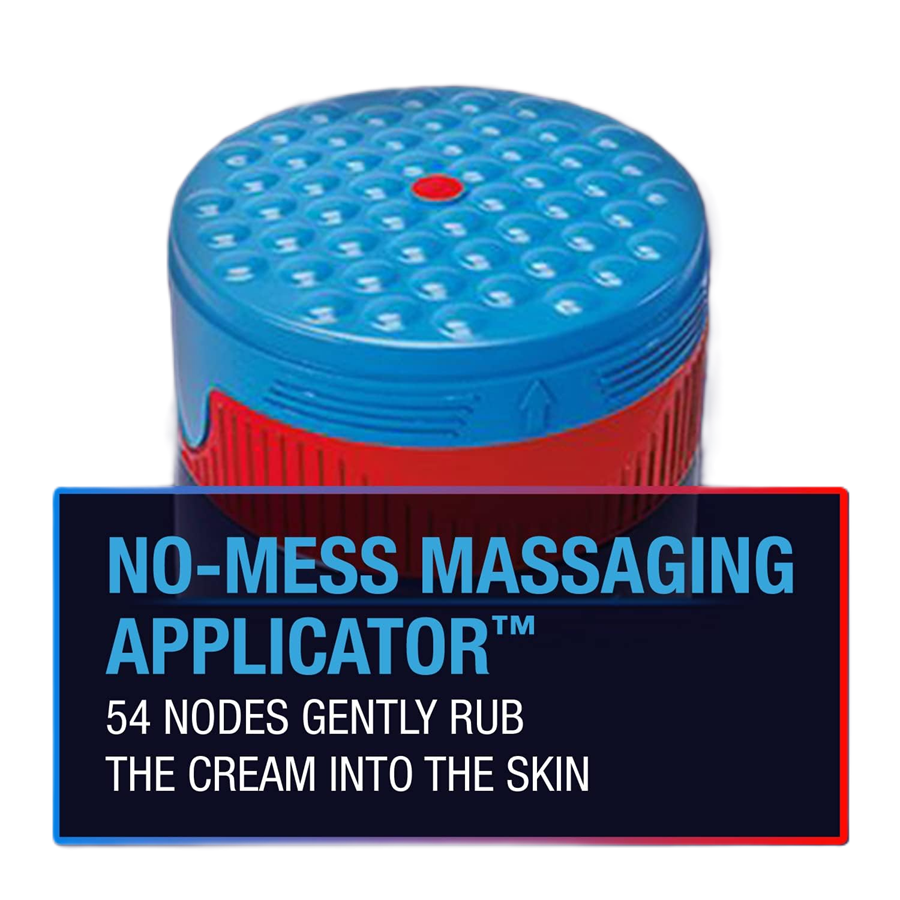 Icy to dull, hot to relax. Introducing Icy Hot Pro No-Mess Pain Relief Cream with Massaging Applicator, a powerful pain-relieving cream designed to give you fast-acting, targeted relief for aching muscles and joints. The Icy Hot Pro patented formula contains two maximum-strength pain-relieving ingredients, menthol and camphor. These two pain relievers work together to penetrate to the nerves and work on more points of pain. Best of all, this Icy Hot Pro Pain Cream comes with an exclusive built-in applicator featuring 54 nodes to help gently massage the cream into your skin on both large and small areas of the body.