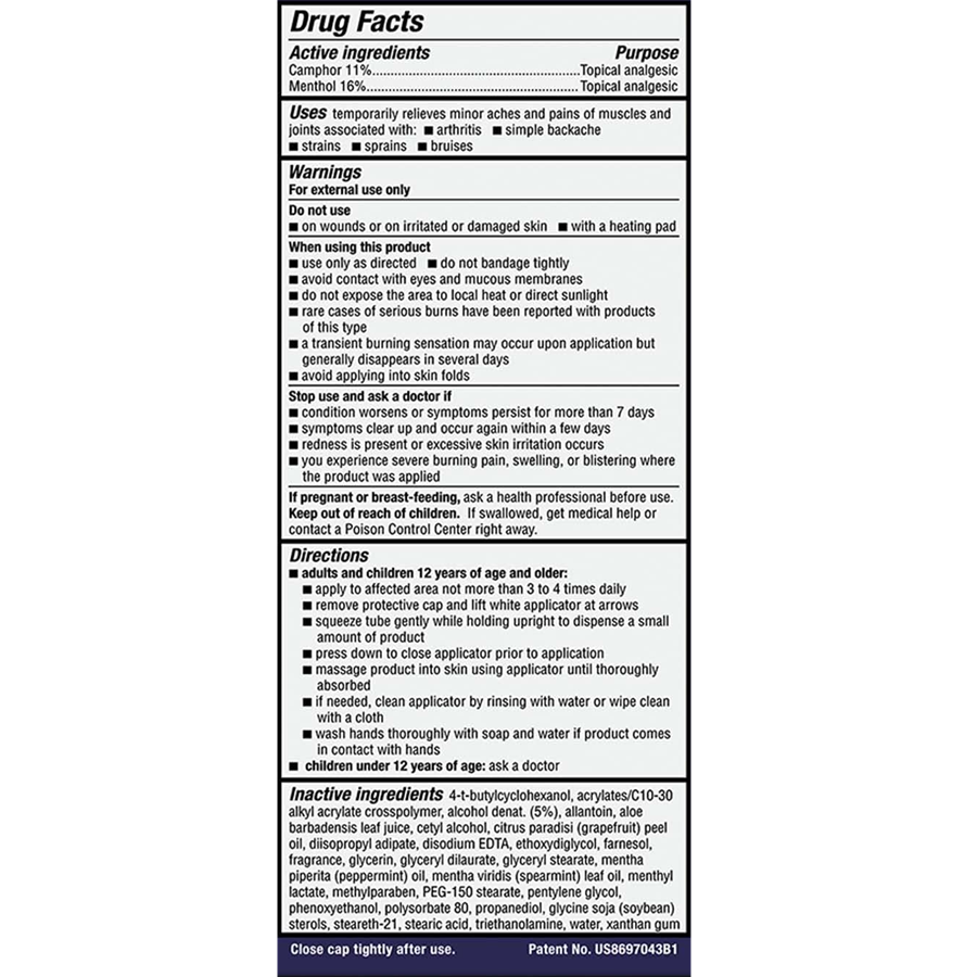 This pain cream is formulated with menthol and camphor, two maximum-strength pain relievers