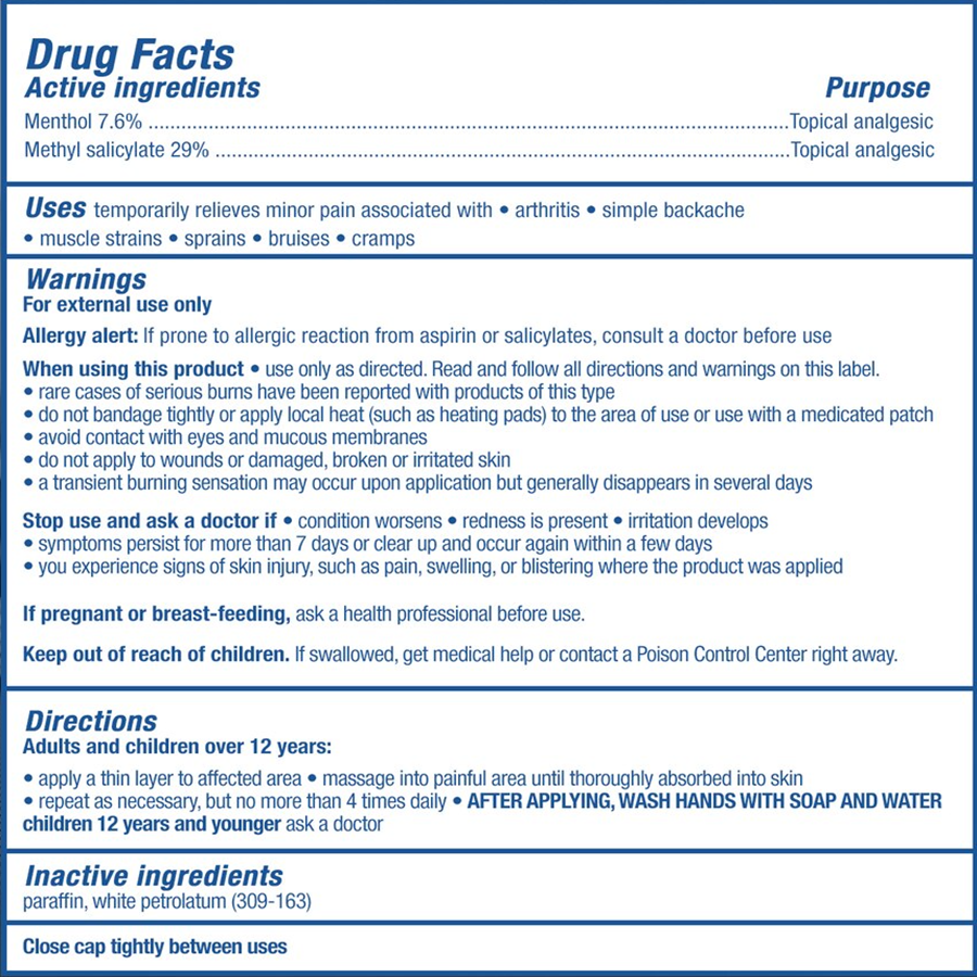 A 5% menthol topical analgesic, Icy Hot cream temporarily relieves minor pain associated with arthritis, simple backache, muscle strains, sprains, bruises and cramps. In addition to menthol, Icy hot also contains methyl salicylate, a nonsteroidal, anti-inflammatory drug which blocks the release of certain chemical messengers that cause pain and inflammation.