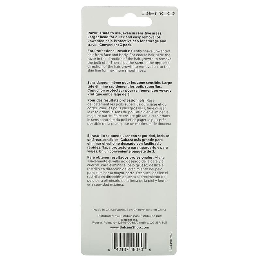 Razor is safe to use, even in sensitive areas. Larger head for quick and easy removal of unwanted hair. Protective cap for storage and travel.