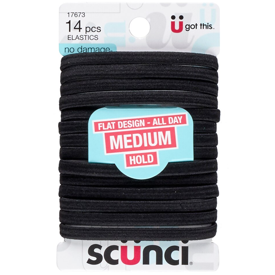 Scunci Flat Design No Damage Hair Elastics, Black, 14ct