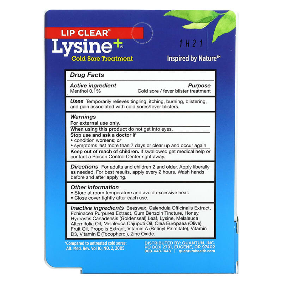 Quantum Health Lysine Plus Cold Sore Treatment Lip Clear Ointment, 0.25 Oz 7g