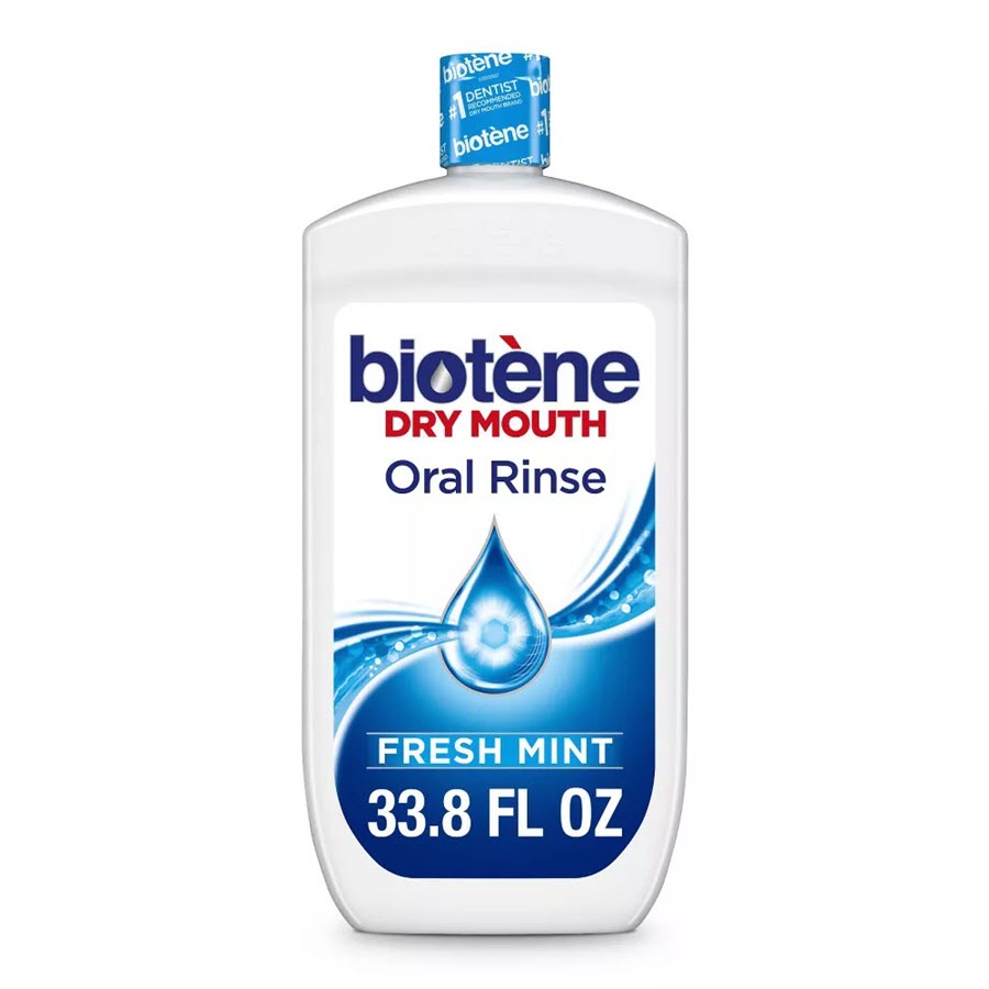 Biotene dry mouth oral rinse provides up to four hours of relief from dry mouth symptoms