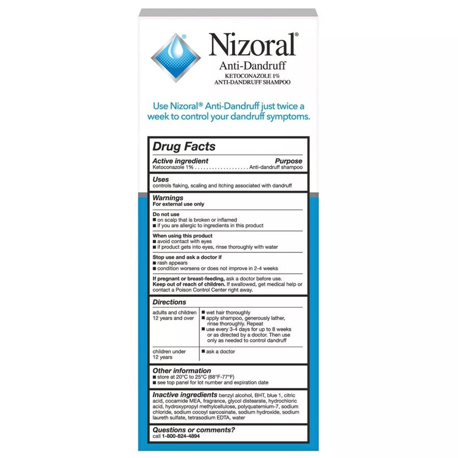 Nizoral A-D Anti-Dandruff Shampoo contains ketoconazole 1% for dandruff relief