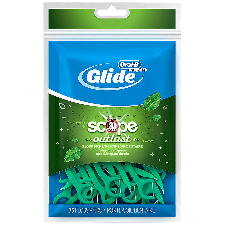 Slides up to 50% more easily in tight spaces with the power of Oral-B Glide + the freshness of Scope Outlast flavor in the convenience of a floss pick. vs. a leading floss pick