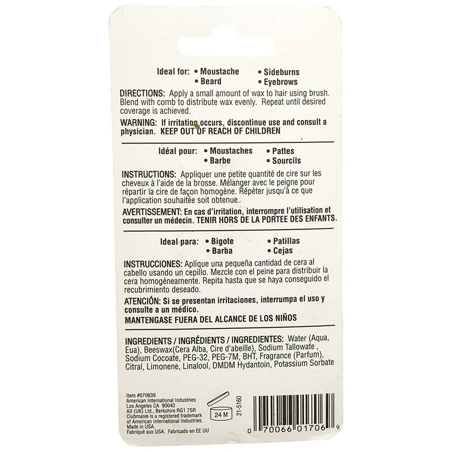 Clubman Moustache Wax With Brush Or Comb, Neutral, 0.5oz