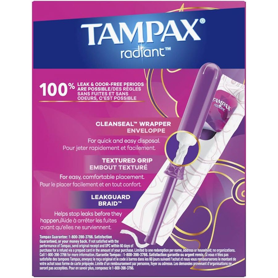 TAMPAX Radiant Tampons provide up to 100% leak & odor-free protection