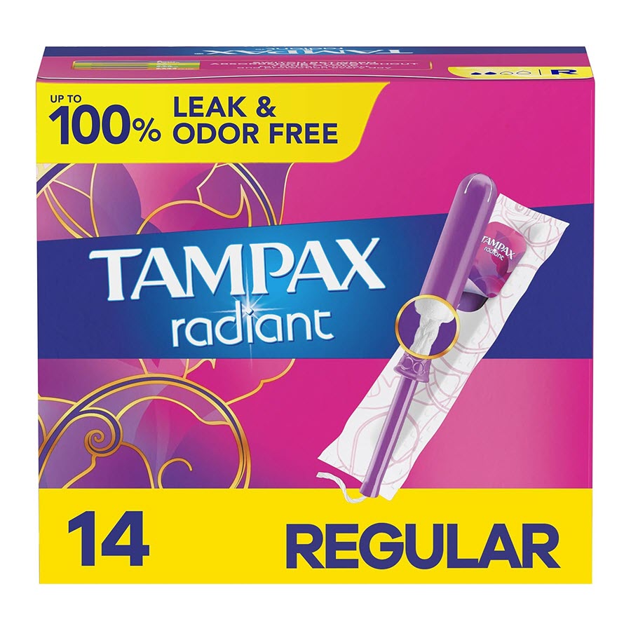 Tampax Radiant Plastic Tampons, Regular Absorbency, Unscented, 14ct