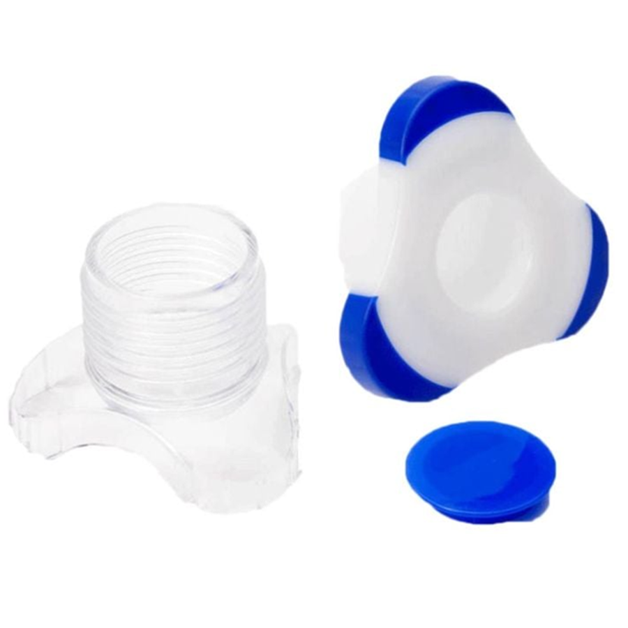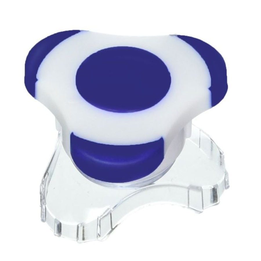 Great for limited strength. Tri-grip design provides secure grip for those with limited strength. Storage area under cap. Translucent clear bottom with opaque white top and opaque blue storage cap and grips. The measure of excellence in self care. Powerful leverage to easily crush hard-to-swallow pills.