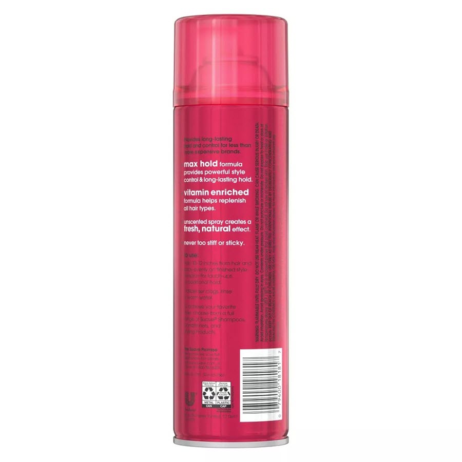 Suave Max Hold Unscented Hairspray has a vitamin and protein-enriched formula