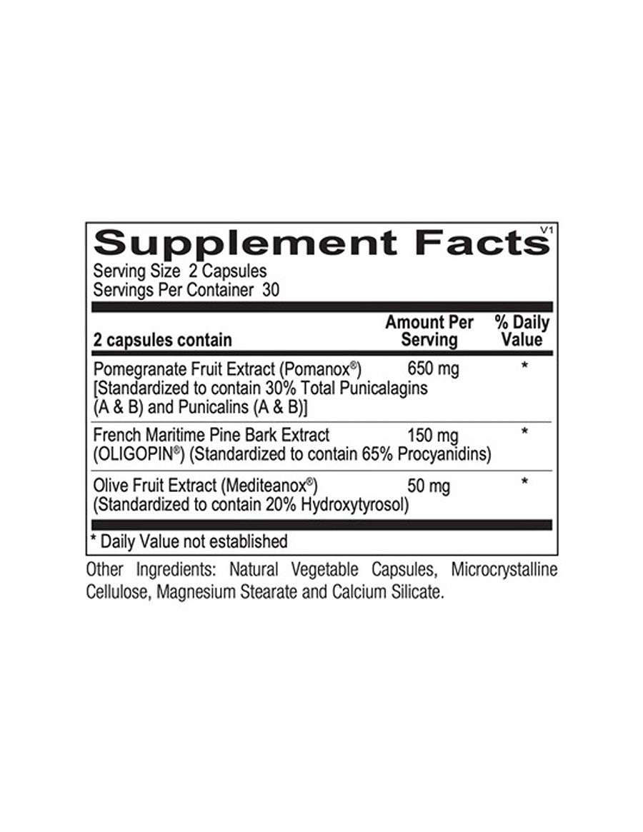 Lipitrol OX is designed to support the body’s ability to maintain healthy levels of oxidized LDL, which research indicates is an important factor in maintaining proper endothelial function and cardiovascular health. Containing standardized antioxidant extracts from olive fruit, pomegranate, and French maritime pine bark, Lipitrol OX synergistically maintains normal endothelial function, supports healthy blood pressure levels and a normal inflammatory response.