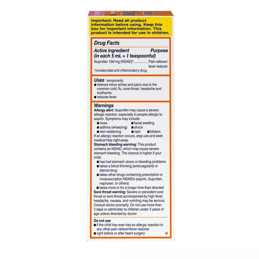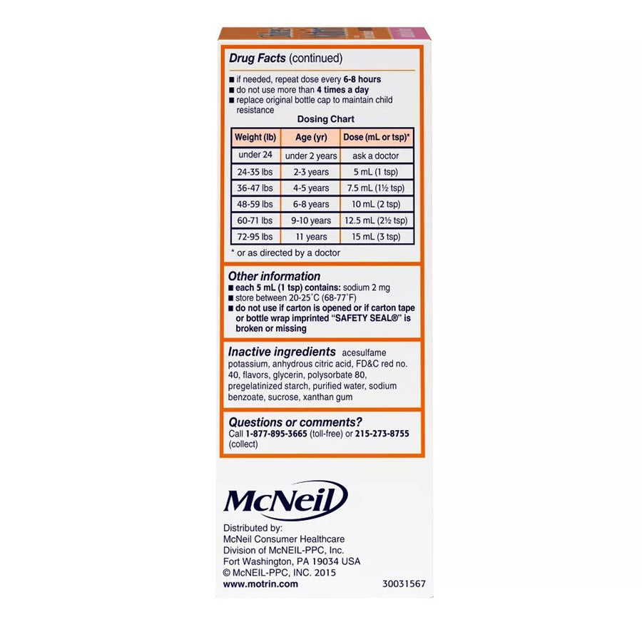Formulated with the NSAID ibuprofen, the liquid medicine is both a pain reliever & fever reducer