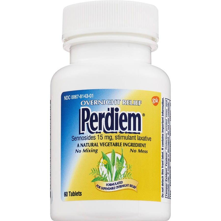 Perdiem Overnight Relief Sennosides 15 mg Stimulant Laxative, 60 Tablets