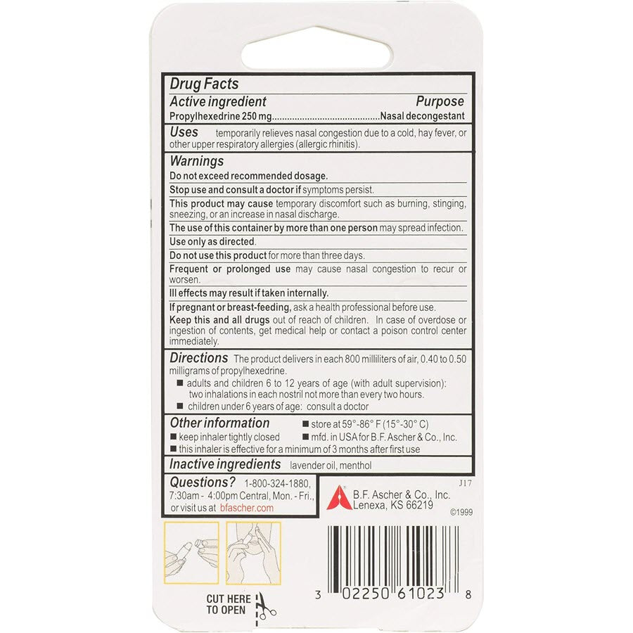 This Benzedrex Nasal Decongestant Inhaler helps to relieve your stuffy nose and sinus pressure so you can breathe easier. It contains medicated vapors that provide temporary relief of nasal congestion caused by sinusitis, hay fever or the common cold.