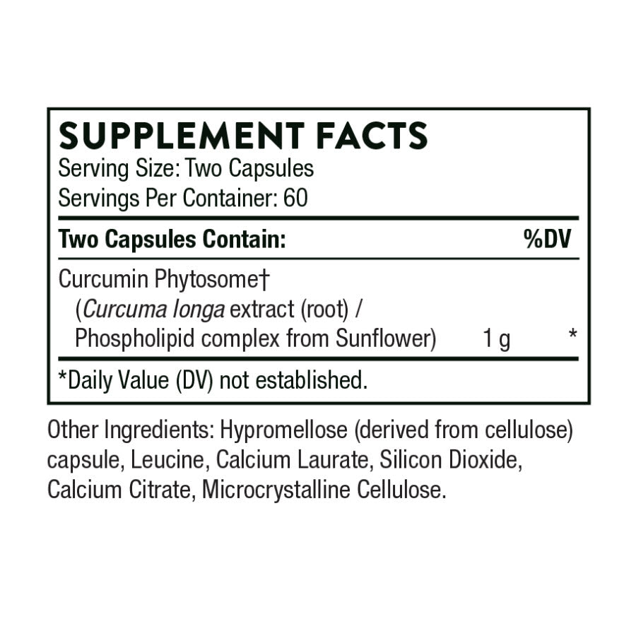 Thorne's Curcumin Phytosome is the most clinically-studied curcumin on the market, helps maintain a healthy inflammatory response in the joints, muscles, GI tract, liver, brain, and nerves.