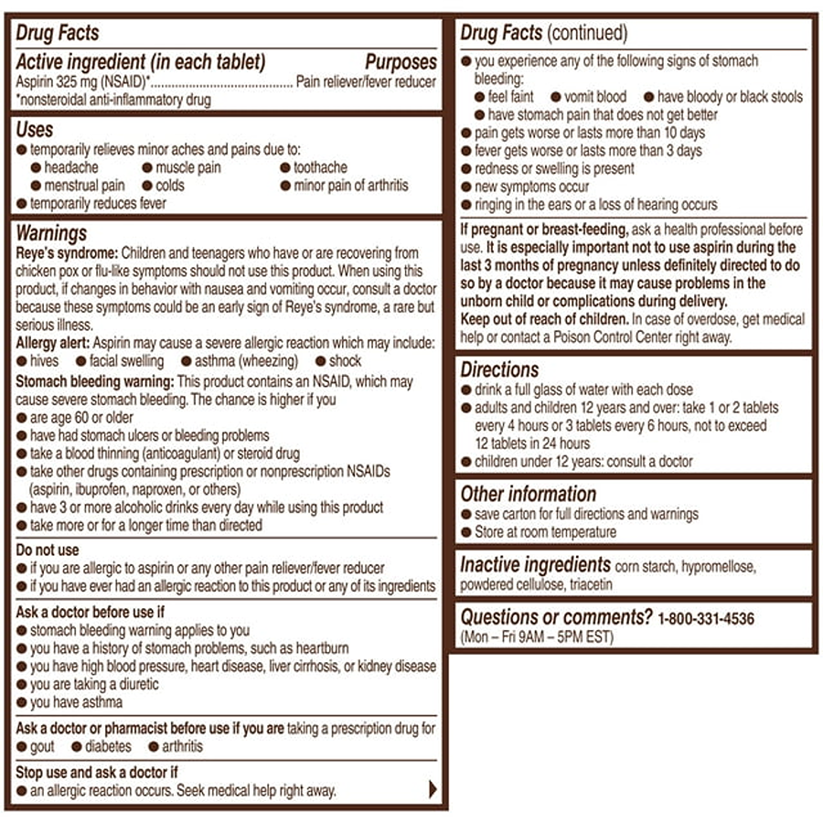 ● Aspirin is caffeine-free and is coated to make it easier to swallow.