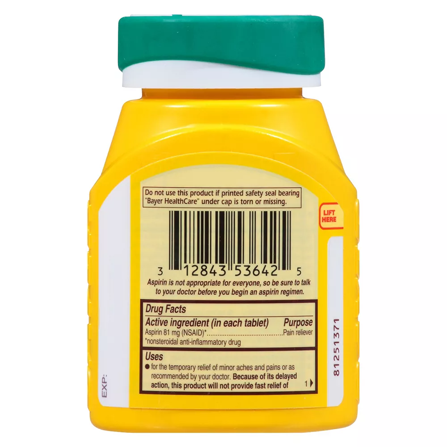 Bayer Low Dose Aspirin 81mg Regimen Pain Reliever Coated Tablets (NSAID), 300ct