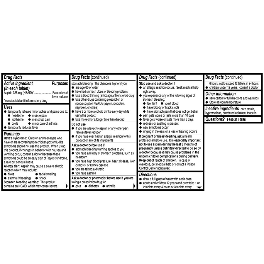 Whether you're taking Bayer(R) Aspirin for pain, such as a headache, or a doctor-directed aspirin regimen for cardiovascular benefits, you can feel secure knowing that you've chosen a top-quality product from the authority on aspirin.