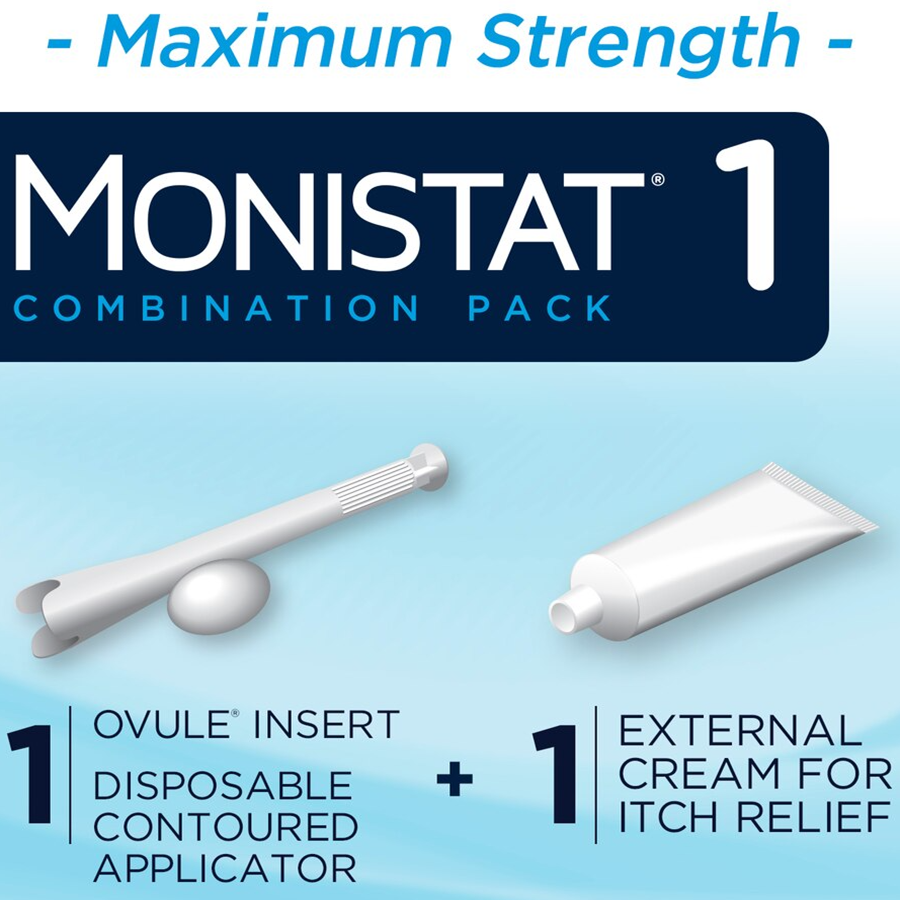 Monistat vaginal ovule combination pack relieves yeast infection symptoms 4x faster than the leading prescription pill*; pack includes external Monistat anti-itch cream
