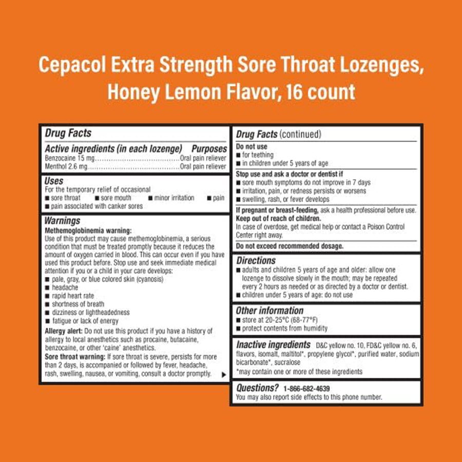 - EXTRA STRENGTH RELIEF: Cepacol Extra Strength helps relieve your sore throat, mouth and canker sore pain