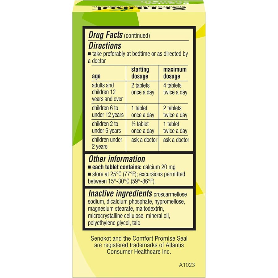 HELPS RELIEVE OCCASIONAL CONSTIPATION. Senokot Regular Strength Laxative Tablets contain a natural vegetable laxative ingredient. Senokot Regular Strength tablets can be used in children ages 2+.