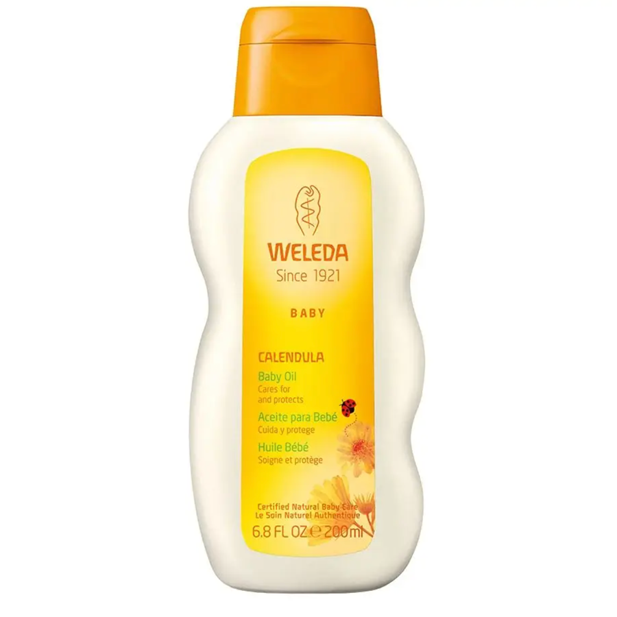 Weleda Calendula Baby Oil swaddles baby in a warming, gently fragrant sheen of delicate oils. With sweet almond and sesame oil, extracts of calendula and chamomile or a subtle, comforting fragrance. Use for all-over body care on baby's skin, or to give a loving massage with your own touch. Baby relaxes and skin feels silky, supple and protected.