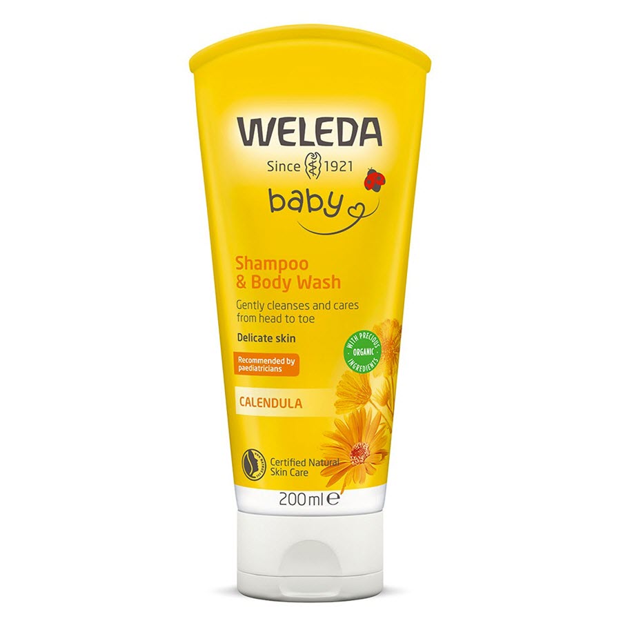 Gently cleans hair and body in one convenient step. Formulated with the mildest organic and natural plant-based cleansers, Weleda Baby Calendula Shampoo and Body Wash is a gentle wash that retains the moisture in your baby's hair and skin, leaving it feeling silky smooth and protected from drying out. Organic calendula flower extract soothes and softens your babys hair and skin, while organic sesame seed oil absorbs fast and easily to keep your baby's skin and hair from losing precious moisture