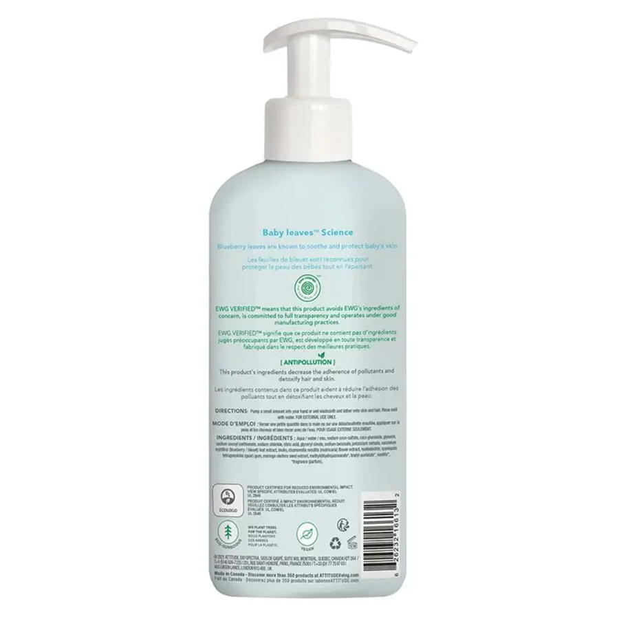 Protect and nourish baby's delicate skin naturally with ATTITUDE's baby leaves™ 2-in-1 Shampoo and Body Wash - Pear Nectar for baby. Enriched with only EWG VERIFIED™, hypoallergenic and soothing ingredients like blueberry leaf, this natural baby shampoo and baby wash is a worry-free way to wash them no matter what life throws their way! End their day feeling refreshed and relaxed from head to toe with Almond Milk 2- in-1 Shampoo and Body Wash for baby.