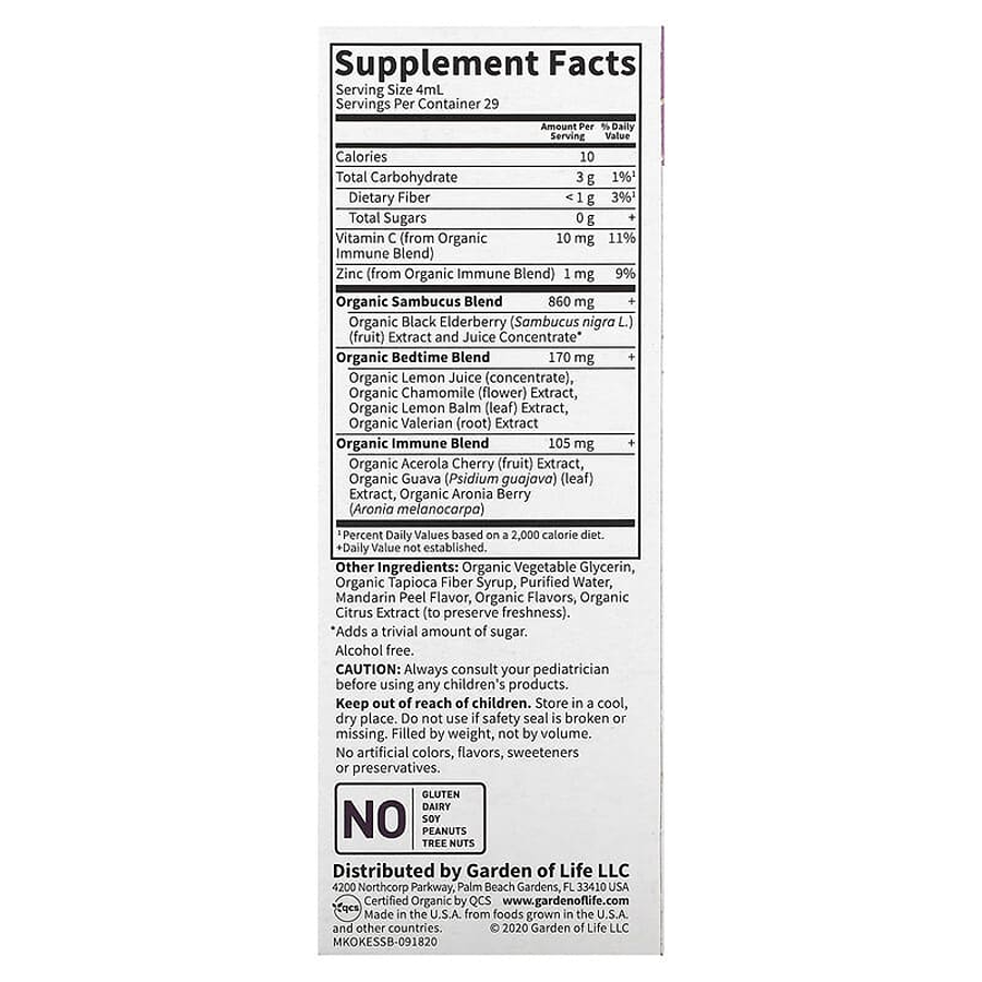 Garden of Life Elderberry & Sleep Immune Support for Kids with Zinc, Vitamin C, 3.92 FL oz