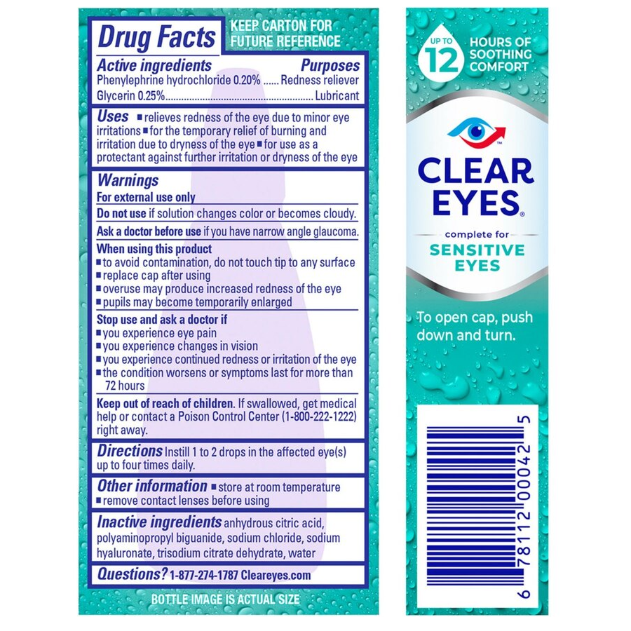 Clear Eyes Sensitive Eyes Soothing Comfort Eye Drops, 0.5 Fl Oz