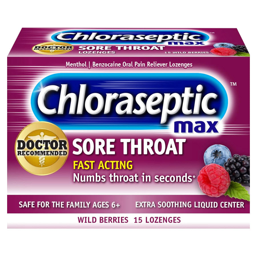 Chloraseptic Max Strength Sore Throat Relief Lozenges, Wild Berries, 15 ea