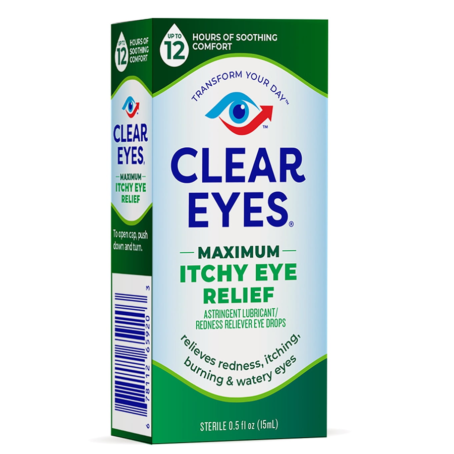 Clear Eyes Maximum Itchy Eye Relief Eye Drops provide soothing relief for itchy and irritated eyes