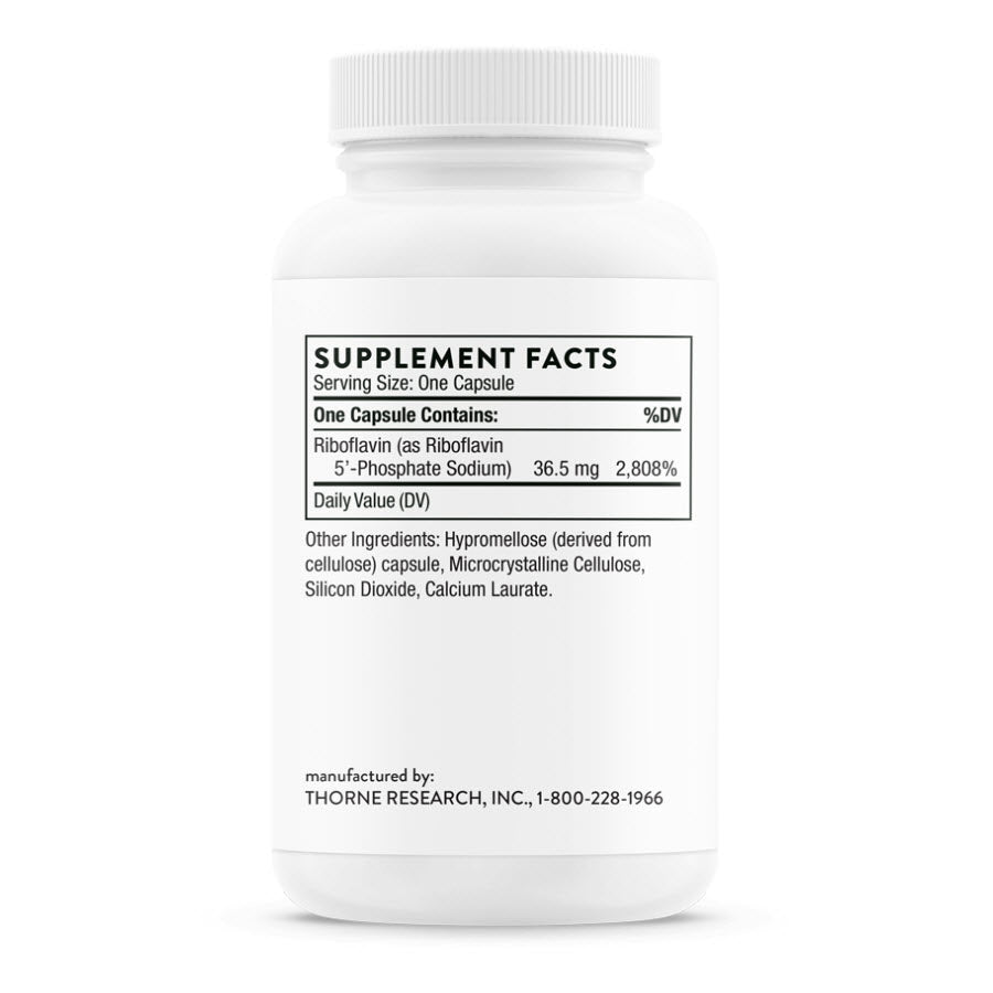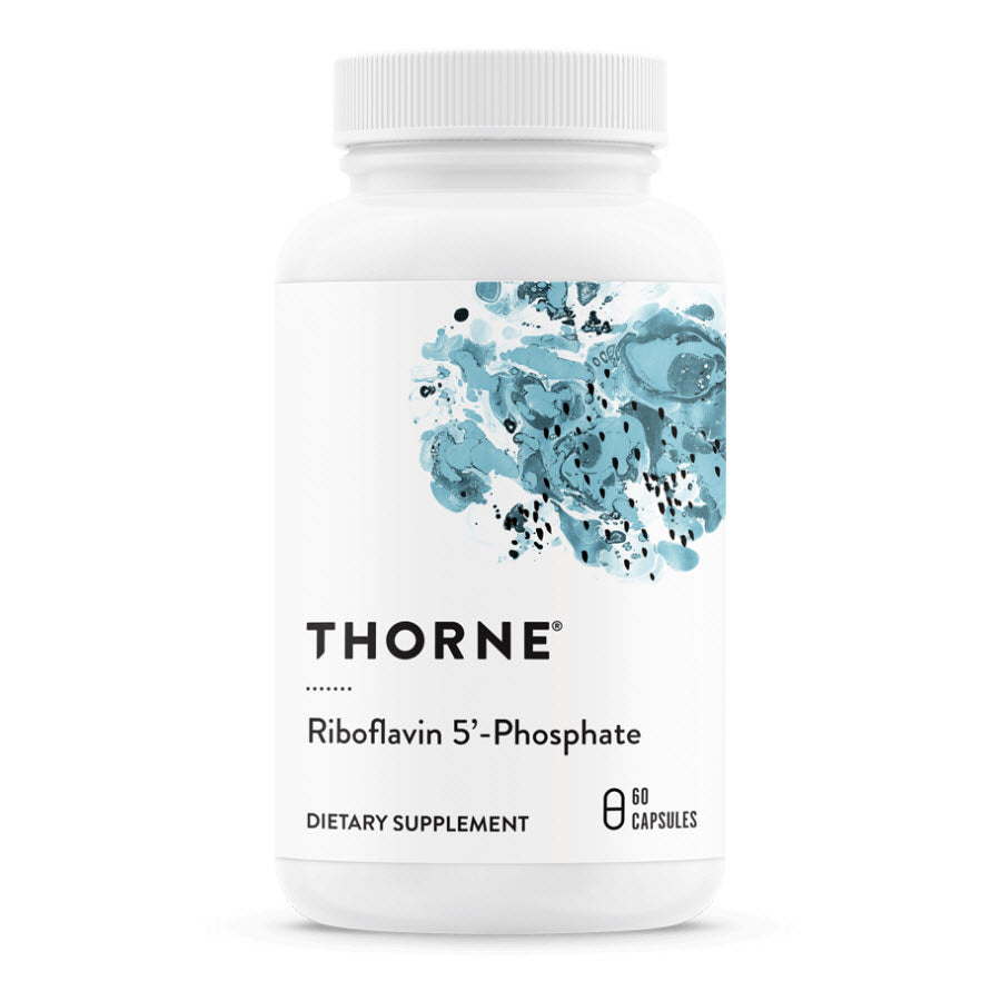 To be utilized by the body, however, riboflavin must first be converted to its active form – riboflavin 5'-phospate (R5P). A compromised digestive system, however, can adversely affect the body's ability to convert riboflavin to R5P. And certain prescription medications can also compromise the absorption of riboflavin, putting it in a state of deficiency. Thorne's Riboflavin 5'-Phosphate, which is not derived from yeast, provides supplementation with a bioactive, tissue ready form of riboflavin that can be optimally utilized in the body.