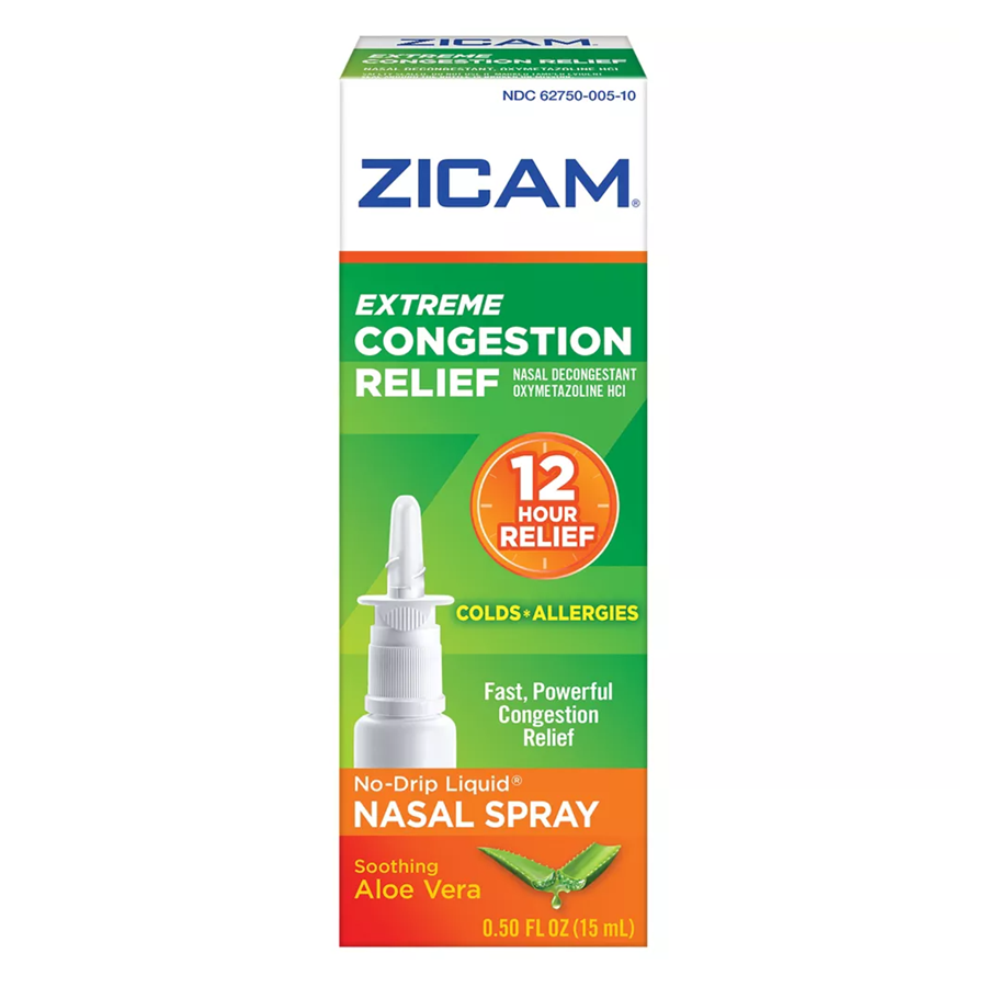 Zicam No-Drip Liquid® Nasal Spray helps knock out nasal congestion and sinus pressure from the common cold, hay fever, or upper respiratory allergies. Provides fast, powerful congestion relief and lasts up to 12 hours. Active ingredient: Oxymetazoline hydrochloride 0.05%. Also contains soothing aloe vera. To use, pump 2-3 times into each nostril every 10-12 hours, do not exceed 2 doses in any 24-hour period.
